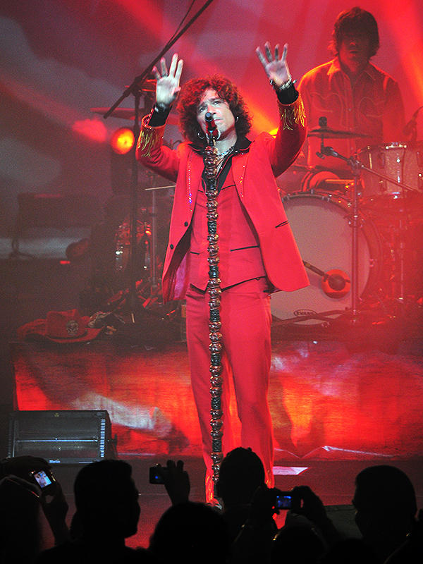 Apenas se encendieron las luces y apareció en el escenario vestido de traje rojo con brillos, desató el griterío del público, la mayoría jóvenes.