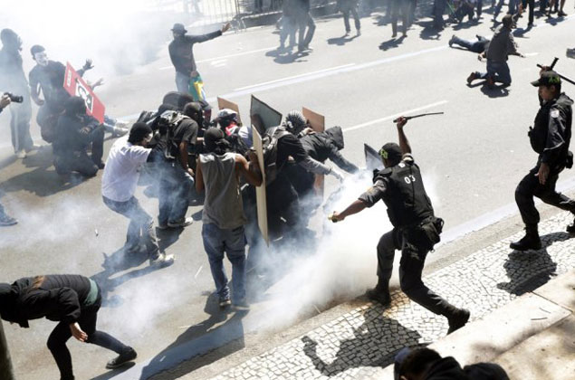 Chocan policías y manifestantes en Brasil a horas del inicio del Mundial