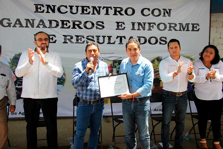 En el evento que contó con la presencia de productores del campo, comisarios ejidales y ex comisarios de la zona rural, el presidente de la Asociación Ganadera Local de Acapulco Pascasio Rosales Morales entregó un reconocimiento al alcalde Evodio Velázquez por su apoyo incondicional y solidario al campo de Acapulco, así también reconocieron el desempeño del director de Desarrollo Rural Iván Saldaña Jiménez por la aplicación correcta y transparente de los programas y recursos para la gente de los pueblos.