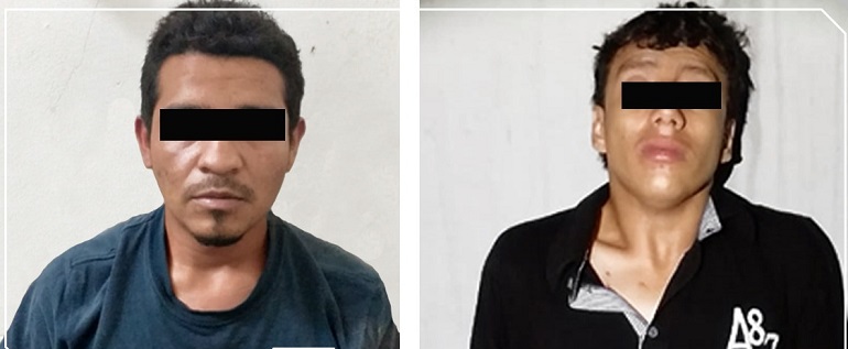 Los hombres detenidos dijeron llamarse Ramón "N" de 28 años de edad, portaba un arma de fuego calibre 9mm, con un cargador abastecido con 15 cartuchos útiles del mismo calibre y José Manuel "N" de 19 años, a quien le fueron localizadas seis bolsitas de plástico con probable "cristal" y cuatro bolsitas con supuesta cocaína en piedra.