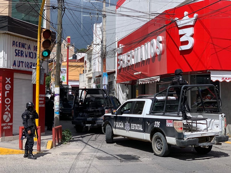 Los policías cerraron la vialidad entre la avenida Vicente Guerrero y la calle Abasolo, pero no acordonaron la zona con cinta amarilla, como se acostumbra en estos operativos.