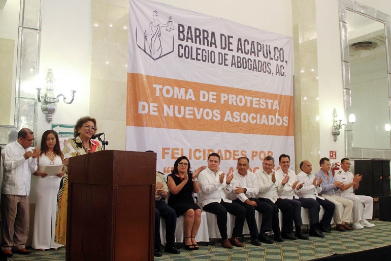 Acapulco Gro; a 12 de julio de 2019.- Durante su participación en la toma de protesta y entrega de reconocimientos de integrantes de la Barra de Abogados Acapulco, la presidenta municipal, Adela Román Ocampo, llamó a sus homólogos juristas trabajar de manera recta, anteponiendo los derechos humanos de los acapulqueños y guerrerenses.