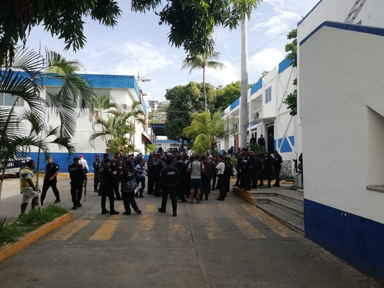 Acapulco Gro; a 12 de julio del 2019.- Molestos por supuestos abusos en su contra, cientos de elementos de la Policía Municipal se manifestaron este viernes al interior de las instalaciones de la Secretaría de Seguridad Pública.